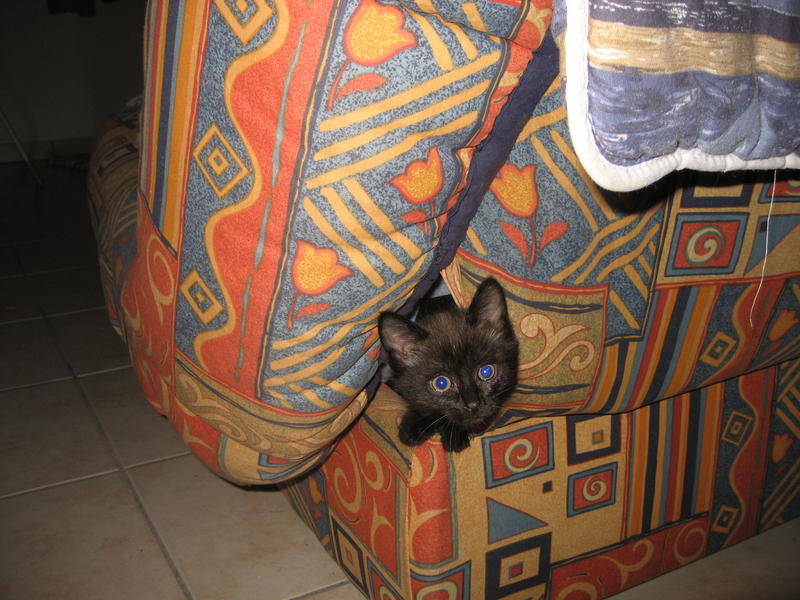euh oui... la journée... je suis partie au boulot et c'est rentrant à 18h que (comme toi) j'ai entendu des petits bruits provenant de l'armoire... quand j'ai ouvert, y'a une boule de poils tout hérissée qui en est sortie!!! je t'explique même pas la ruée dans la gamelle et le pot de colle toute la soirée :-)