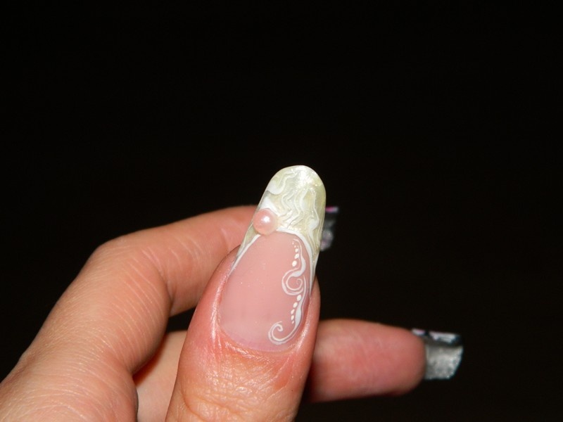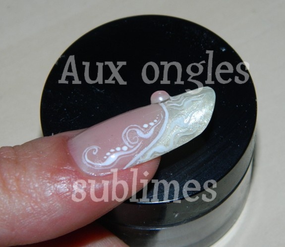 mon pouce en gel: brick pink vamp, mask moyra, french pearl, peinture moyra et perle manucure production