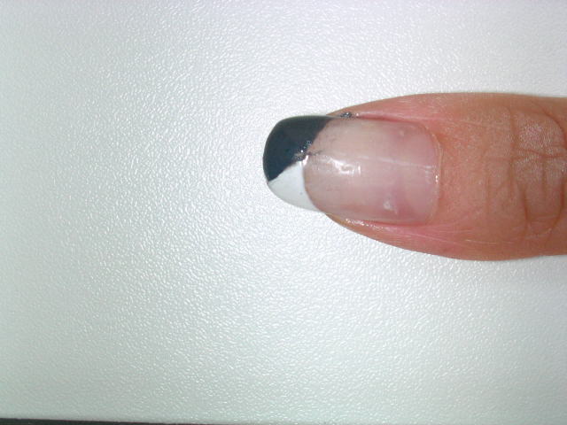 ben en fait j'ai dabord fait la french blanche et ensuite le noir mais je n'arrive pas en enlever le surplus avec le cleaner il reste du noir mais c'est peut etre à cause ue mon noir est fait avec du fard à paupières