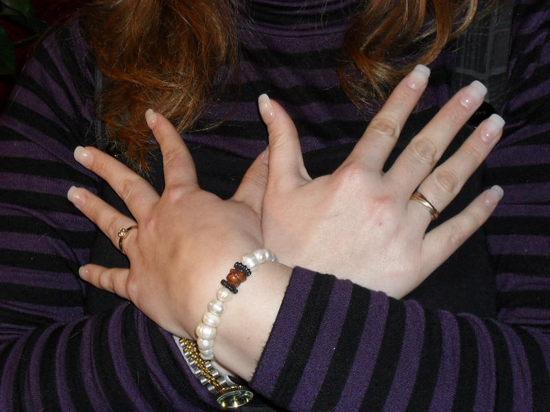 la pose est joli mais dommage on voit la démarcation des tips il faut que la capsule fonde sur ta plaque !! continue c'est en travaillant que l'on progresse bises!!