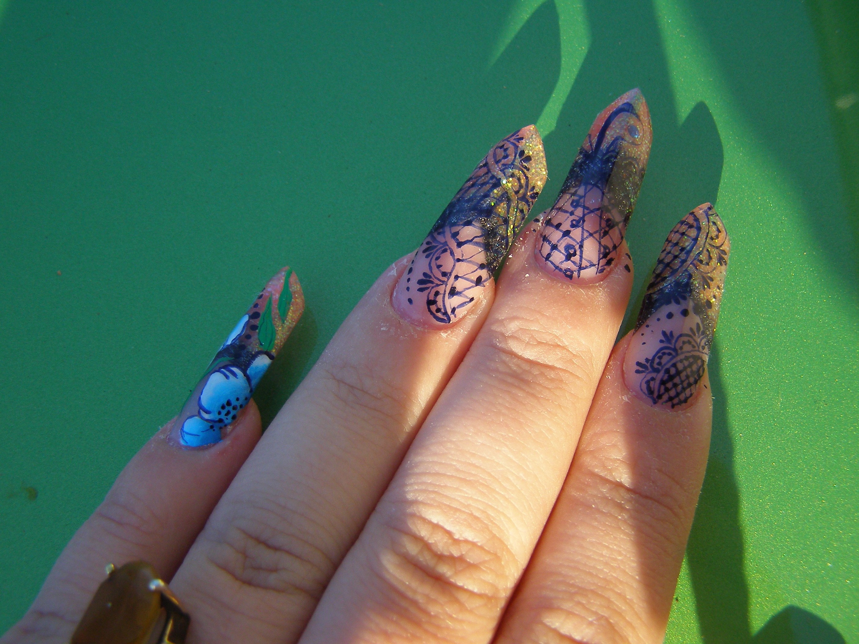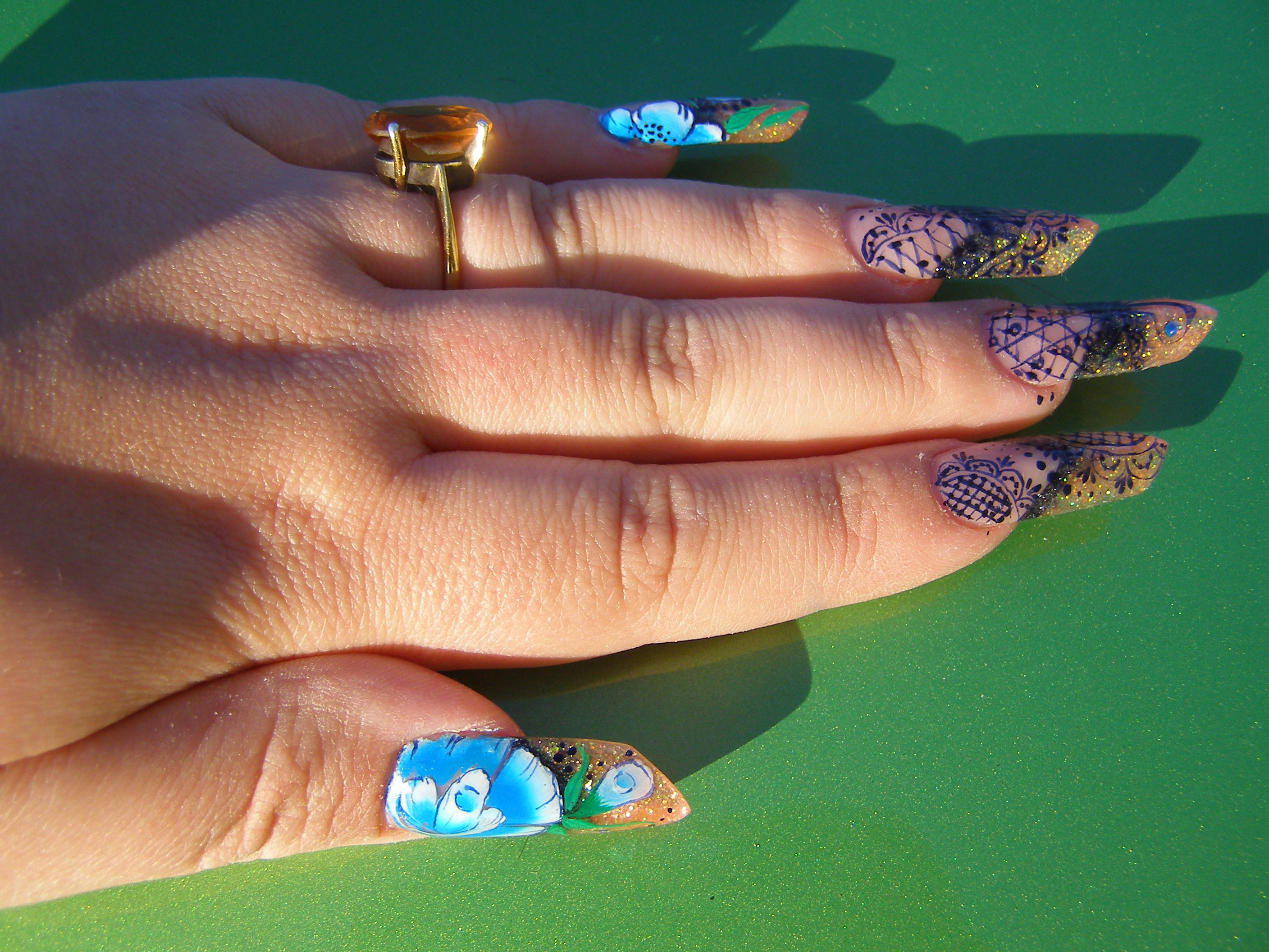 oui la déco n'était pas light, j'ai voulu retester pleins de choses car depuis ma formation je n'ai pas pu refaire ni de one stroke ni de dentelles... alors j'ai chargé pour faire des essais mais sur mes clientes je suis plus sobreje trouve ta déco trop chargée, c'est dommage car au final ça écrase ta pose qui est sûrement superbe !