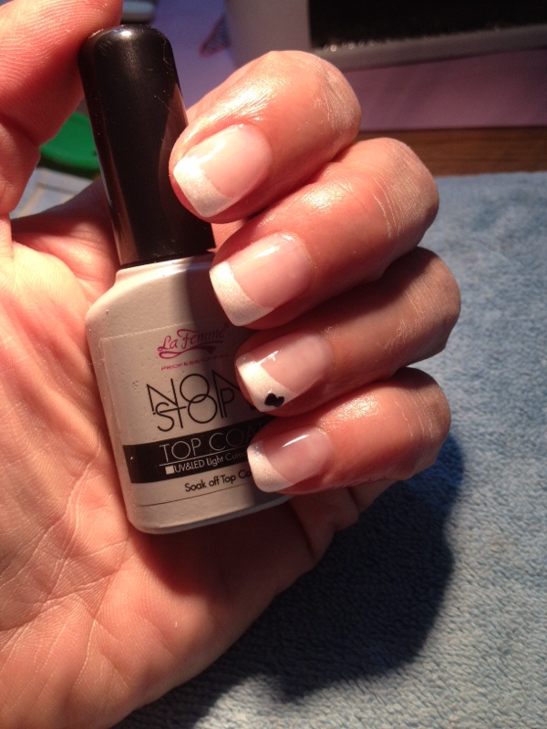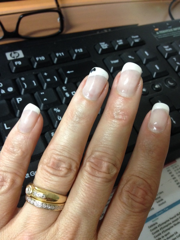 la french en biais est jolie et honnêtement je ne voit pas grand défaut, tu as bien respecté l'espace entre le gel et les cuticules, les parallèles ok, juste peut être ta french un peut plus épais côté french haute (je ne sais pas si je suis claire) sinon bien
