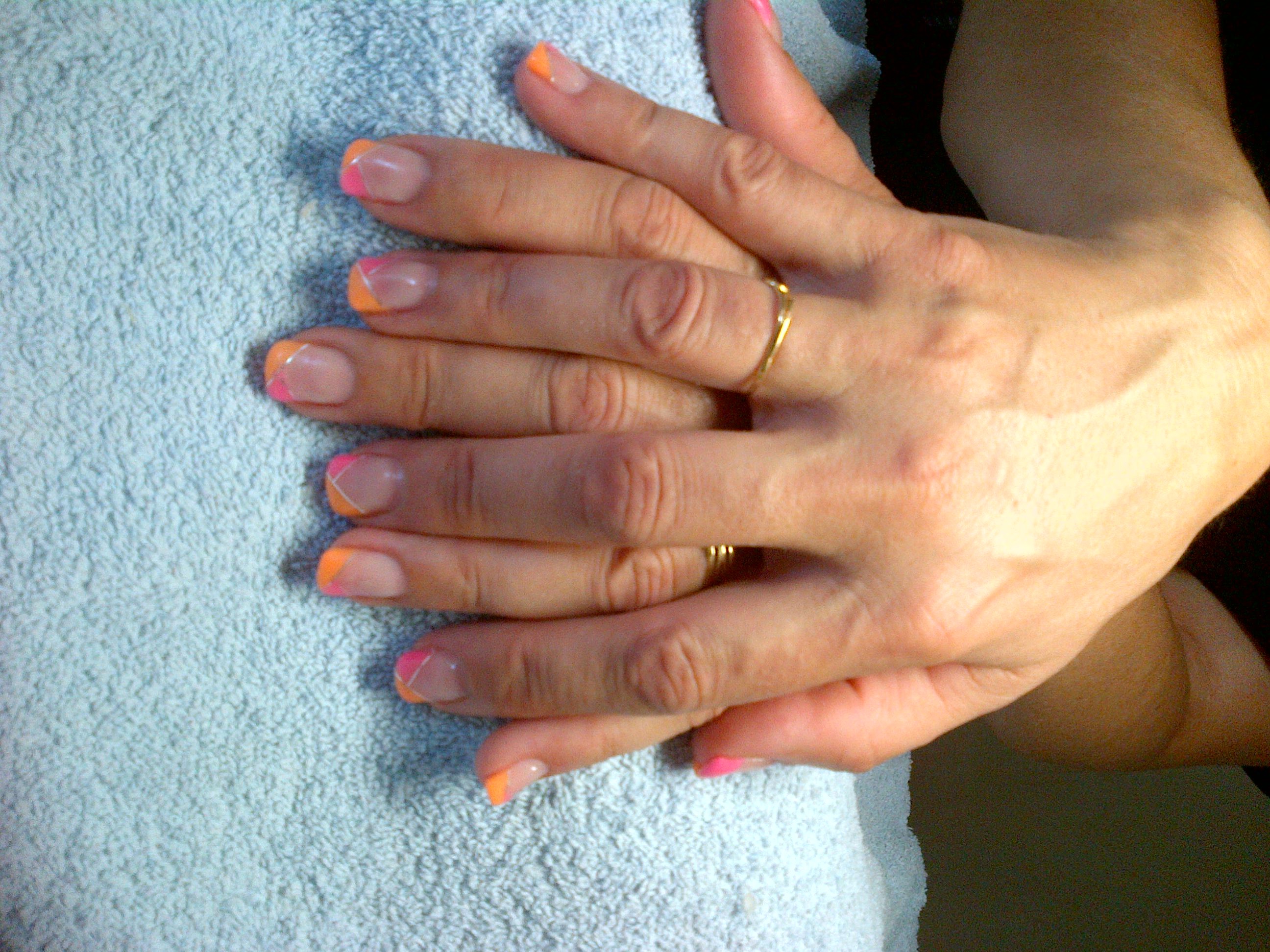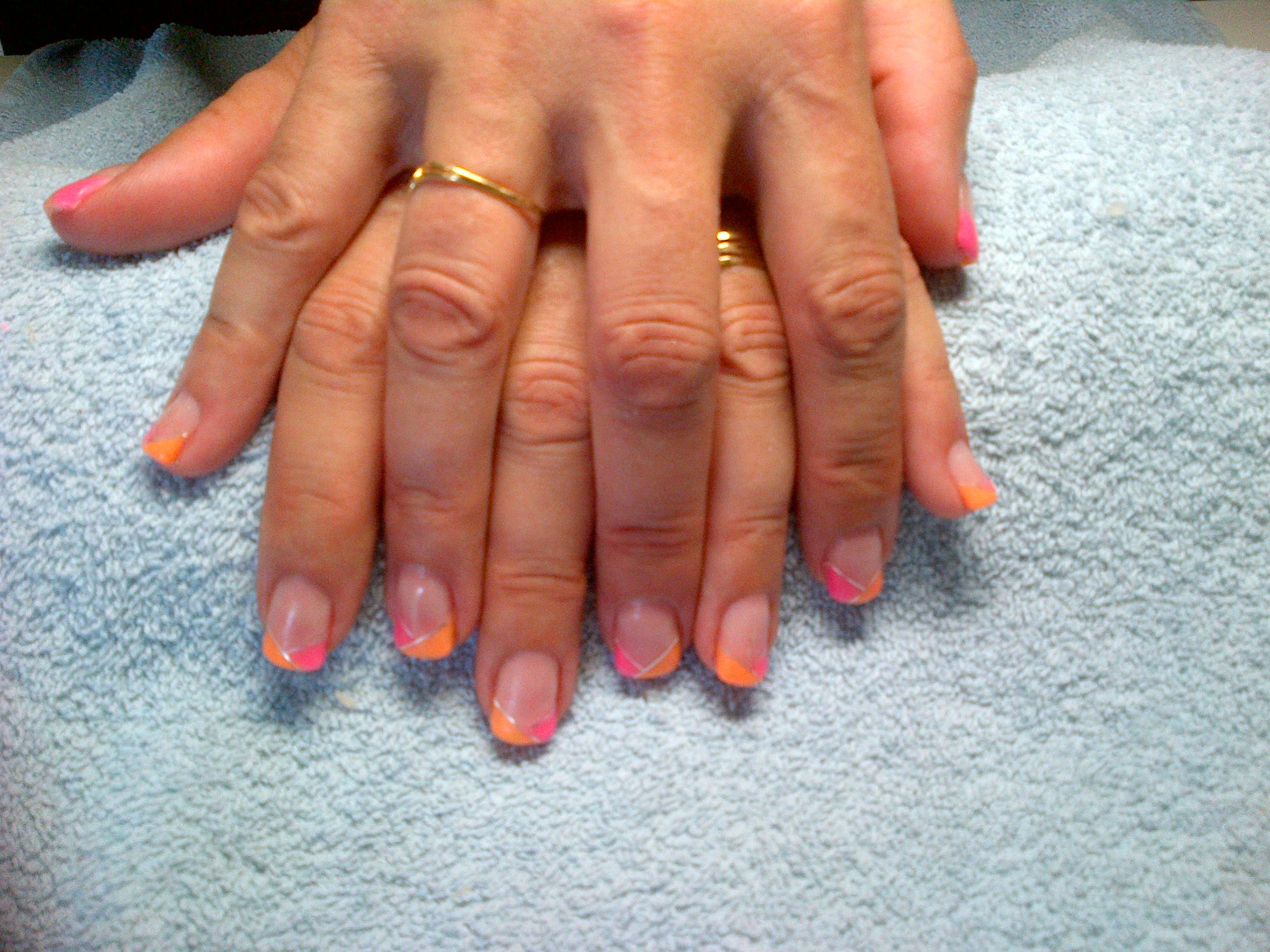 C'est tout simple,je mets le rose de biais, catalyse 2 min puis le orange en biais, catalyse 2 min et enfin je mets un filament de chaque côté des couleurs.