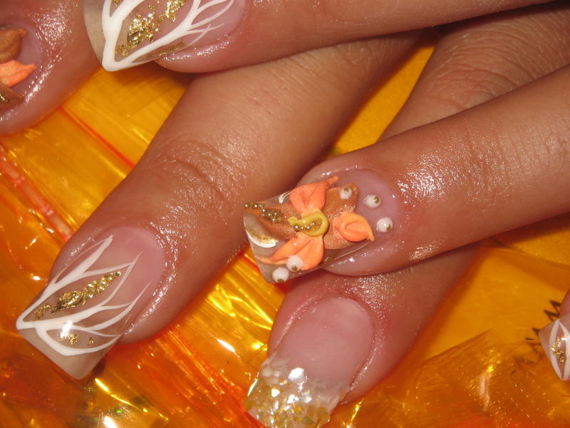 et voilou des petits 3D je tiens à dire que la pose n'est pas de moi ma cliente la faite faire aujourd'hui et elle voulait des 3D... et un doigt avec la french en nacres donc voilou