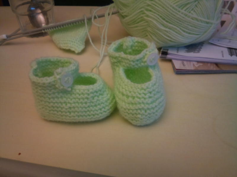 Et des photos des chaussons et la veste que j'ai fait en tricot. (mes premiers)