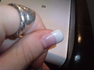 le tout petit truc là?? rien de dramatique! tu mets un bon coup de lime dessus, un coup de bloc blanc sur le tout et un gel de finition, ça repart pour 3 semaines!!