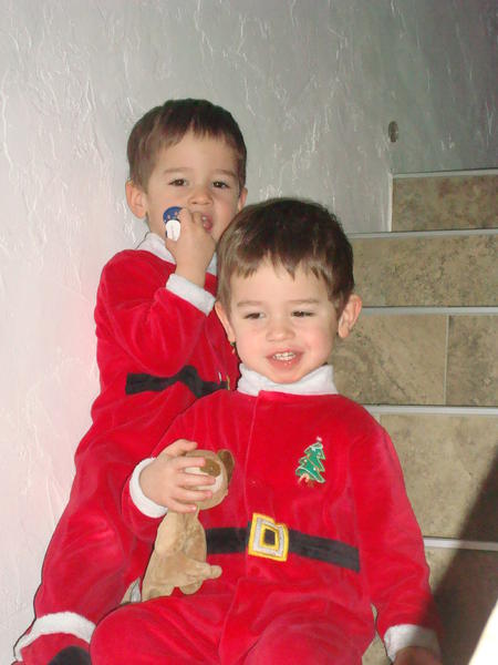 Coucou les filles !! Voila quelques photos de mes monstres , ils ont 2 ans et 3 mois et ils sont déchainés !!!! La première c'est Alessandro , ensuite Aymeric qui est l'ainé de 2 minutes puis la dernière les 2 !
