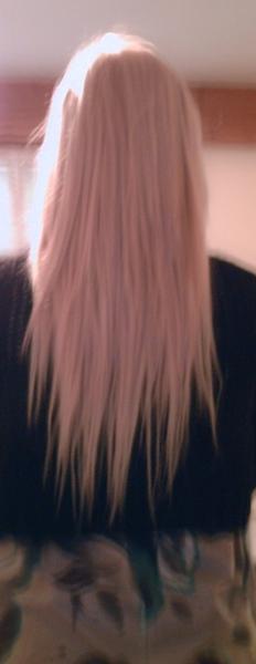 Voila un avant après pose d'extension sur cheveux blond platine, desolé les photo sont flou mais bon.