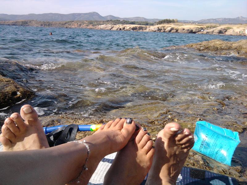Ce que tu vois c'est notre vie l'été dans ma région on part dans des criques avec les enfants et la glaciére et on passe des journée de réves sans que ça nous coute cher!!!et oui on ne part pas en vacances mais quand tu vois ce payasage et que tu es avec "ta tribue" 'est que tu bonheurs!!!!on ne se rend pas compte de la chance qu'on a nous on a pris nos pieds entrelacés en photos!!!!ça change non!!!!Au bout de 20 ans il faut inover et au moins les pieds ça n'a pas de rides!!!lol