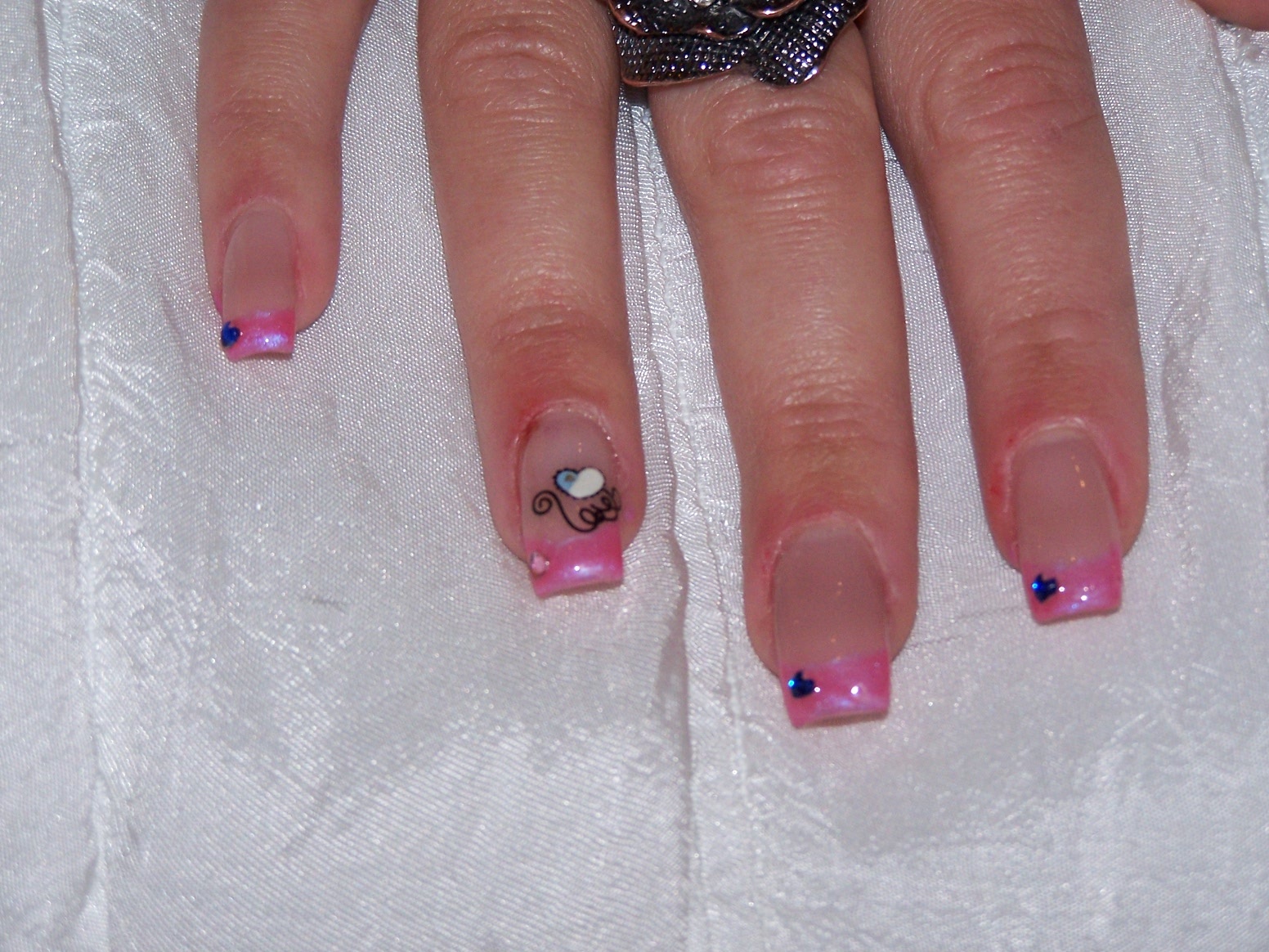 Tu vois sur ton annulaire: il y a le décalco coeur que tu as mis/ -> ta french doit monter aussi haut que là où y a le coté blanc du coeur, tout prè du craboudji noir loooooooool