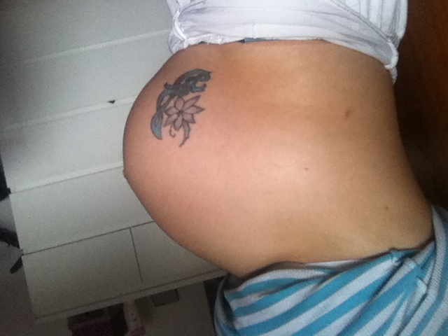 Pff pas cool :( je commence un peux a fatiguer pas du bidou en lui même car j'aime bcp me voir enceinte mais pour dodo c'est compliquer j'ai bcp d mal a dormir, pour m'habiller rien ne me vas et je me sens confortable qu'en robe (hors impossible avc ce temps), et mon dos me fait mal depuis quelques jours je suis que bien assise et encore ... -.- et boff ces vergetures pff donc bon le moral la n'y est pas :( et le temps ne passe pas ça me saoule..