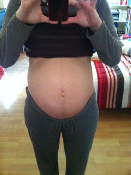 Je ne m'en étais pas rendu compte, mais en voyant les photos je m'aperçois que je commence a avoir cette fameuse ligne noire qui traverse le ventre !