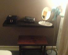 merci c'est gentil !Depuis longtemps je voulais une coiffeuse mais cela coute chèr , alors j'ai acheté une étagère chez Ikéa et mon loulou me l'a instalée aujourd'hui !!trés astucieux comme installation je la trouve trés moderne