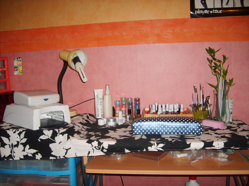 Alors moi pour les ongles quand je vais au dom de mes clientes j'ai acheté une table style camping pliante comme une valise 4kg, super pratique, stable, 49euros. bon d'accord elle n'est pas très styyylée mais il faut voir le coté pratique, + un gros sac de voyage bien solide pour le matériel rangé dans des petites valisettes légères.