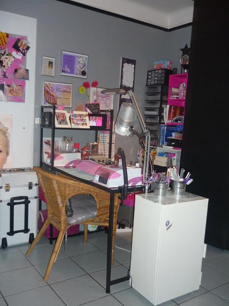 j'aime beaucup aussi!!!j adore le feauteil pour la pedicure tres original!!!tu l'as acheté où?et tes lampes uv c'est toi qui les a colorés ou c'etait deja comme ca??je les adore en rouge!!!dis nous tout....