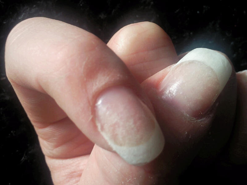 Mais évidemment pour une premiere j'ai des soucis !!! j'ai pleins de petits points blanc, et à certains endroit ça à l'air de pas avoir bien adéré à l'ongle naturel ...