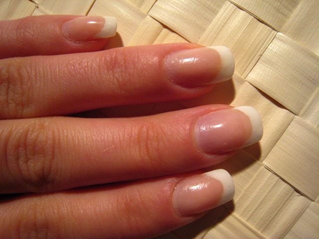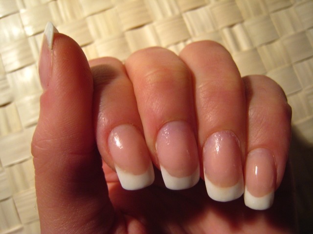 J'ai fait cette pose acryl il y a 2 jours (toujours en suivant la méthode de Polina) hum hum... Alors 1, j'arrive pas à faire un sourire régulier, et 2, ma cover pink ne couvre rien du tout, on voit mon bord libre en dessous..... :'-(