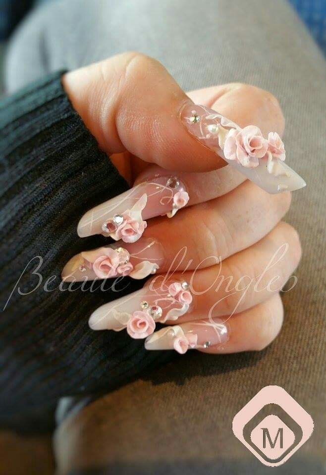 Pose complète en amande russe réalisé entièrement au gel avec toute la gamme fiber de chez Magnetic et les fleurs elles sont faites en résine.