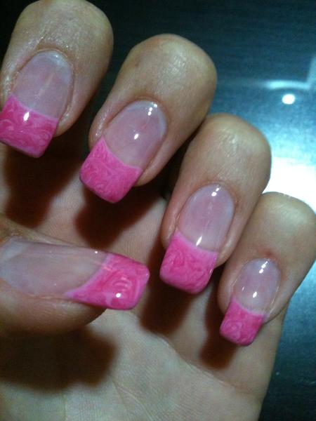 J'utilise les gels de chez cnail pro, marbrer avec 2 couleurs, une rose et une rose claire tjs du même fournisseur.