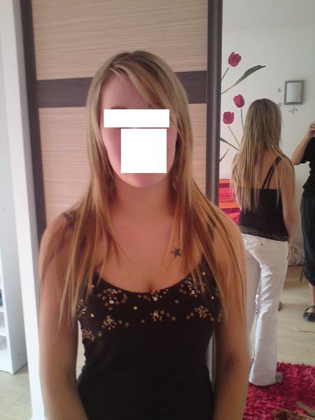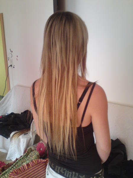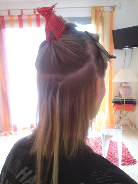3 couleurs de mèches. : marron , blond miel et blond moyen.