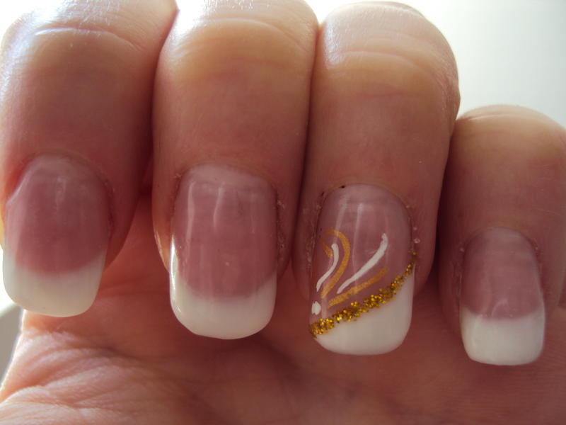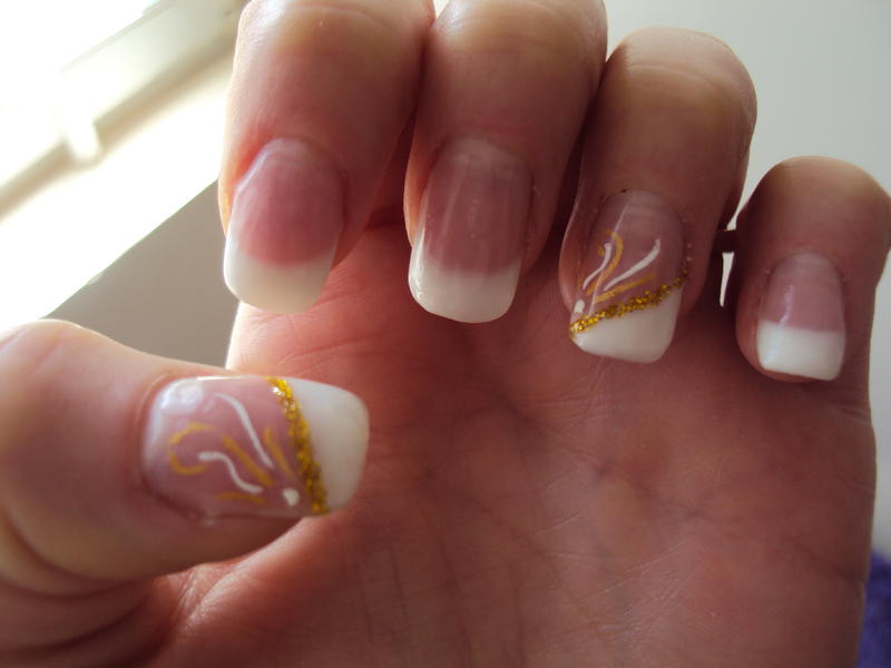 voici donc ma 3è pose avec une petite déco faite à l'acrylique (problème : j'ai fait ma pose hier et l'acrylique commence déjà à s'effacer par endroit:arghh: je ne sais pas pourquoi, pourtant je repasse plusieurs fois dessus au pinceau!)