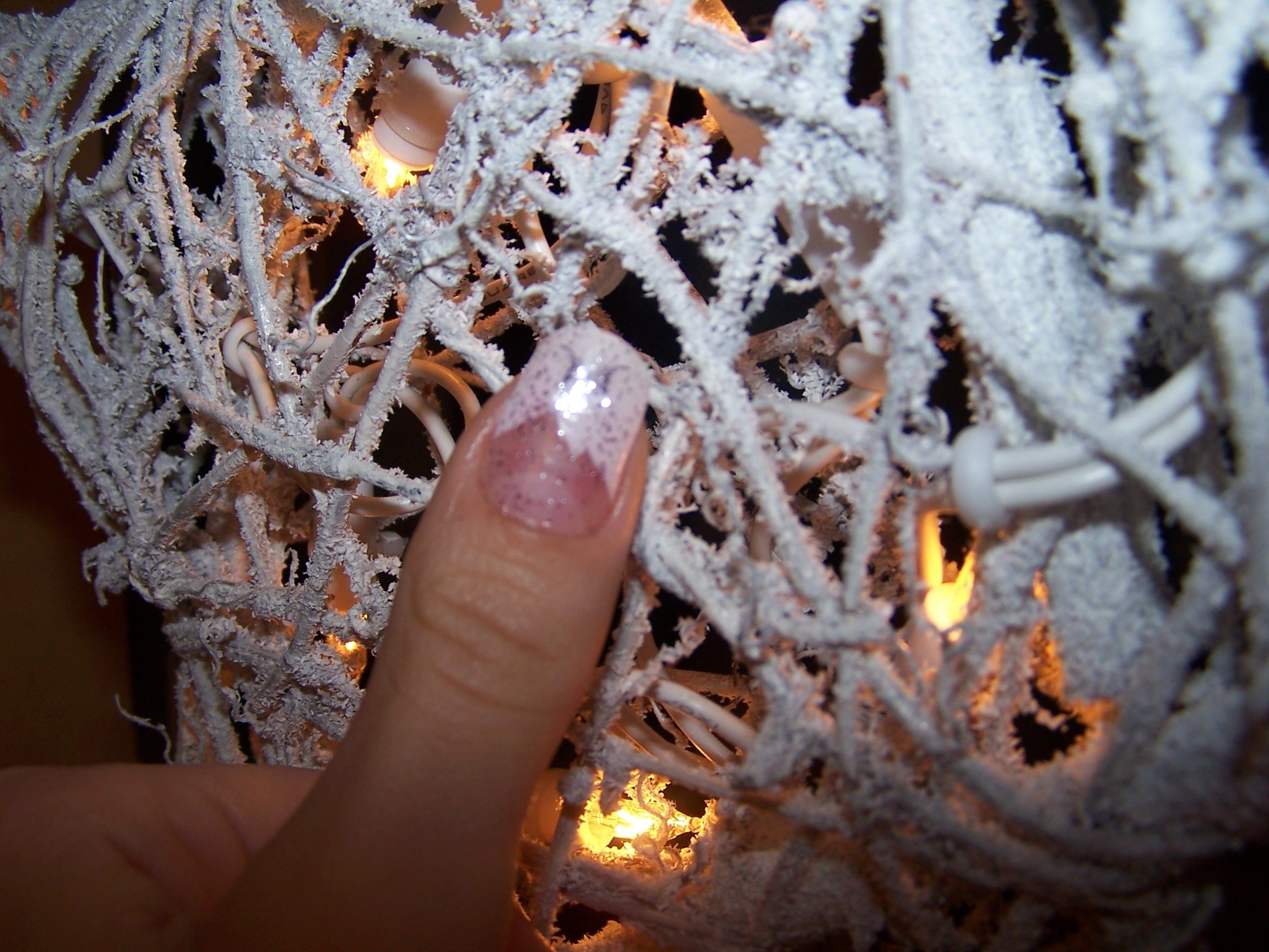 Voici quelques photos de mes mains. J'avais les ongles TRES courts suite a une depose faite a "l'arrache"(:niet: ...:hammer: ), alors pour le reveillon z'avais envie d'avoir de zolies mimines...:arwenalia: . J'ai tout fait avec chablons, sauf le pouce et J'ai travaille avec les gels Akzentz. J'ai fait une deco sur le pouce qu'on ne voit pas tres bien:sad2: , mais il s'agit d'une capsule french "dents de scie"/sticker papillon/vernis paillettes.