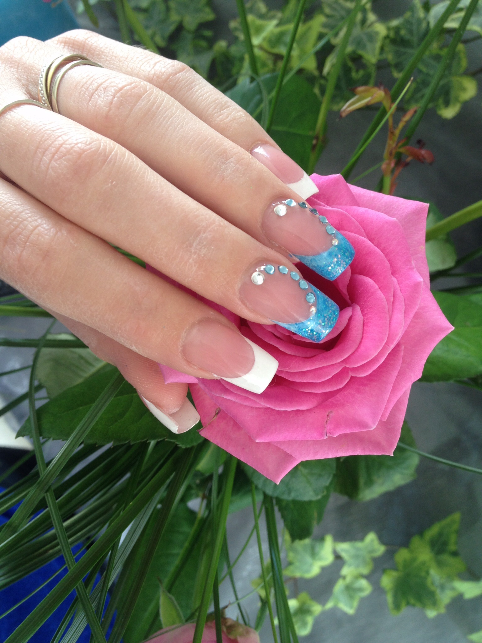 Voila je vous poste une pose que j'ai faite y a quelques jours, capsules, un ongle au chablons, french blanche et french bleu avc des paillettes en plus..