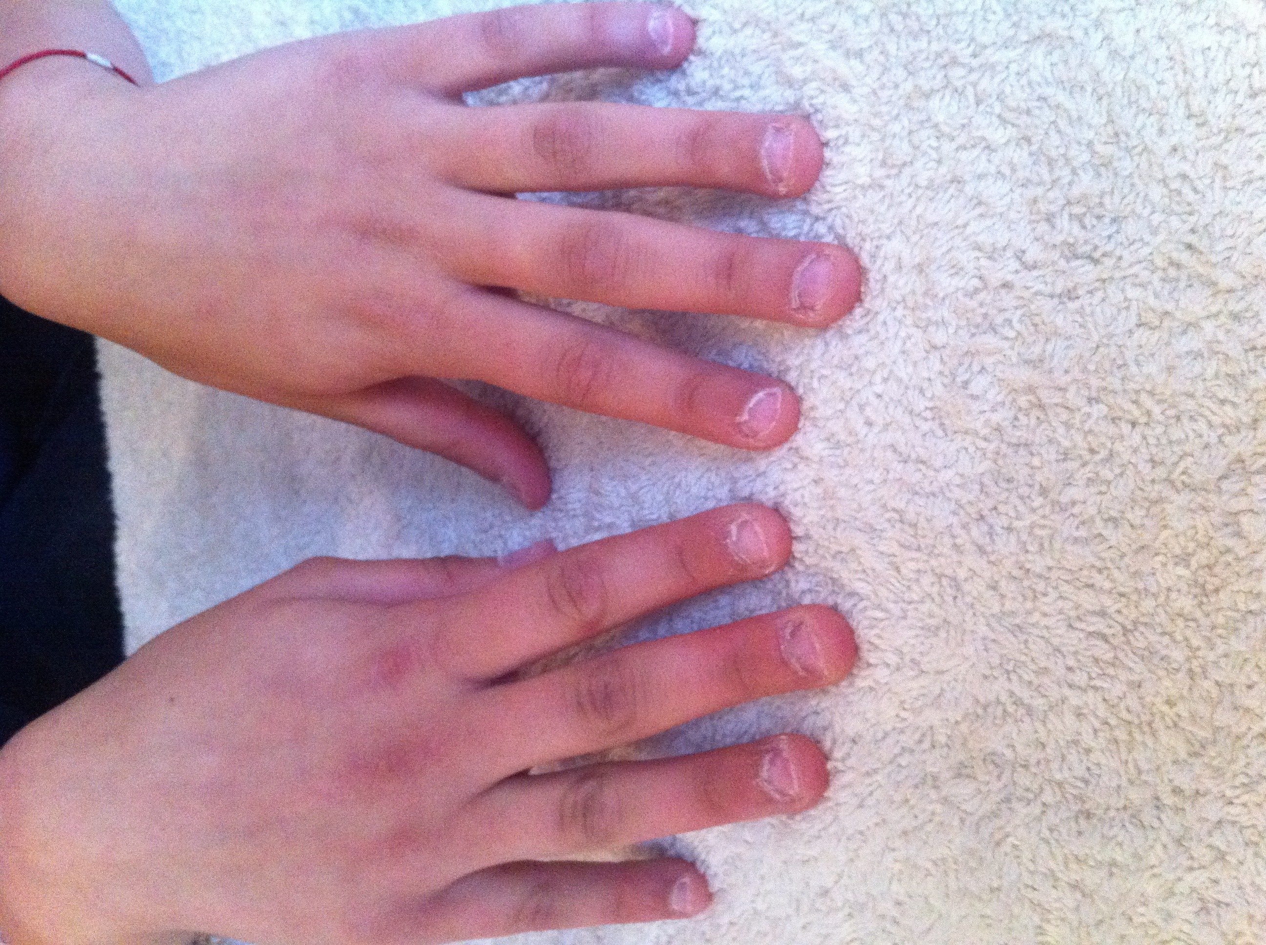 Parfois il y a 2-3 ongles qui s'en vont entirèement, capsule et gel par dessus, parfois des décollements sur les coté et parfois, y'en a qui ne bougent pas d'un poil!
