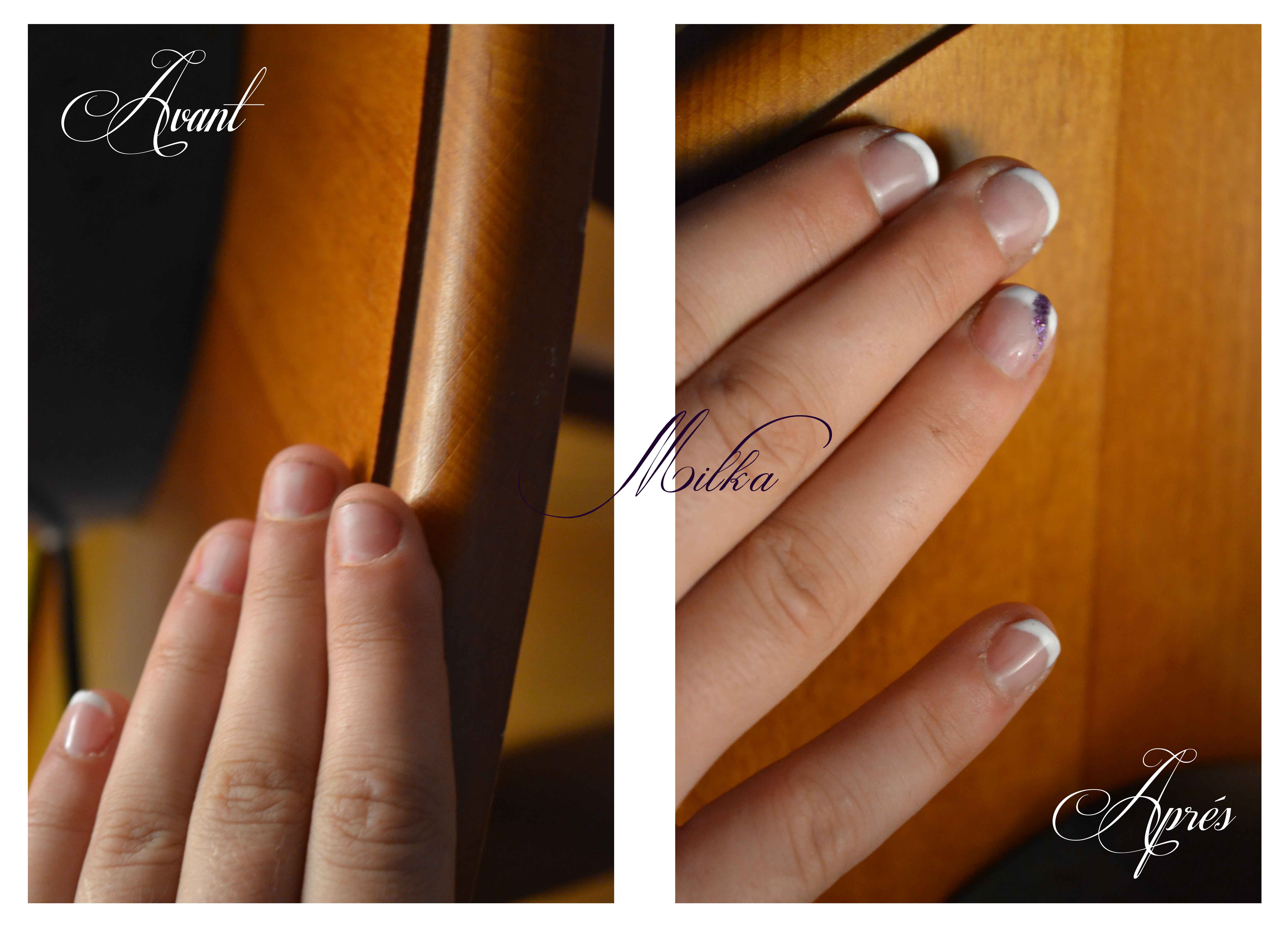 Hier je me suis faite une pose chablons j'avais les ongles mi long sur ma main gauche, je n'ai pas pris de photos j'ai zapé...Mais je l'ai enlevé ce matin et je me suis donné un challenge me faire ongle trés court et faire une pose chablons et en plus sur la mauvaise main. Suite à cette pose j'ai vu beaucoup de défauts j'ai voulu faire un essai de pose longue chablons sur ma main droite...
