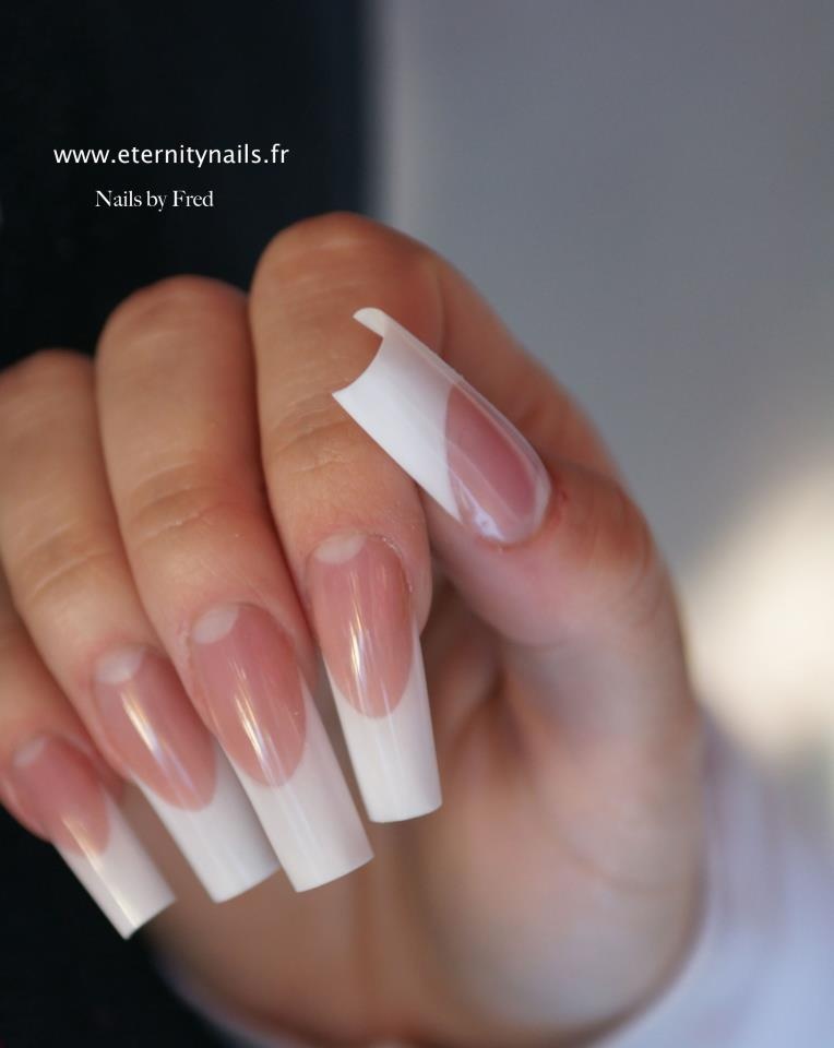 une pose sans cover ( mais faut que le modèle ai une belle plaque) avec une french blanche qui respecte le 1/3-2/3 impérativement ( oui ils mesurent à la latte lol) avec également une construction de lunule ou sans et un bombé impec en fonction de la longueur.