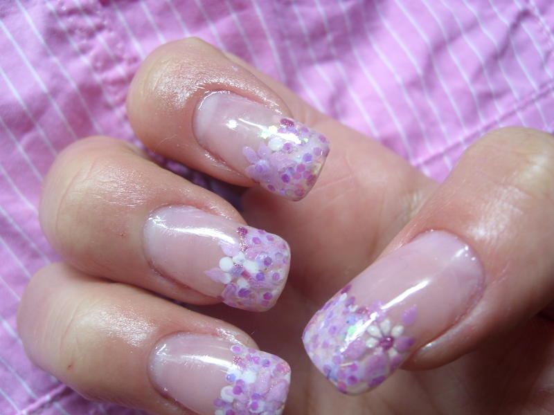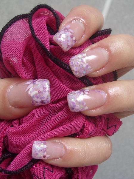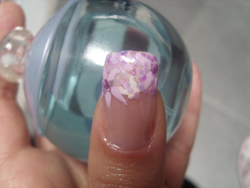 coucou les filles ma petite déco de l apres-midi,avec fleur aux vernis et pailletes rose!! j ai transformée mon ancienne pose car j ai ete fair une séance d uv,et malgré le vernis uv mon tips a jaunit!!!voila quand on veut faire la maligne a etre bronzée!!! enfin voila ca donne pas mal sauf encore mon top coat qui fait des boules un peu partout!! bisousssssss