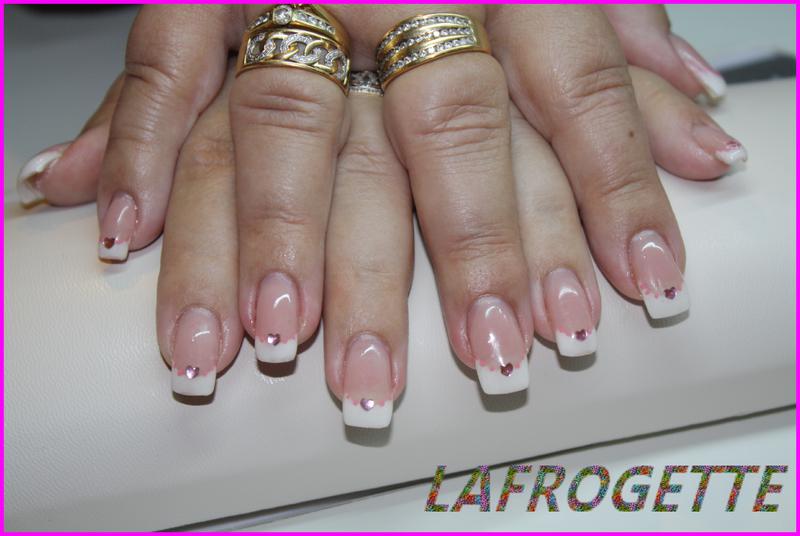 french blanche, strass coeur, points roses en acry