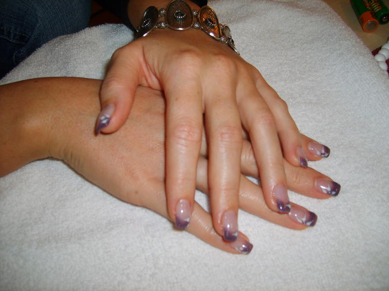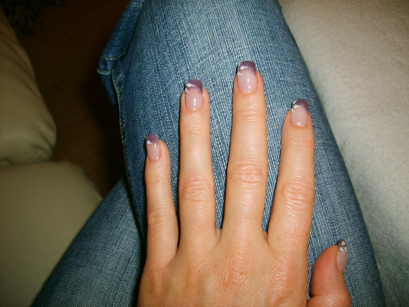 french de couleur prune avec petite deco fleurs et strass , voila laisser moi votre avis bon ou mauvais bien sur.... bonne soiree bis:) ( la pose est de 3 jours j avais pas eu le temps de prendre une photo)