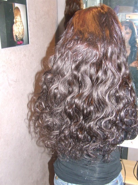 Voici ma pose du jour, 155 mèches ,ondulées , ref 2 , comme l'offre du mois est avec la pose max de 150 mèches j'essaye de poser les 150 mèches pour ravir nos clientes (tant qu'a faire qu'elle fasse une réelle affaire ^^)