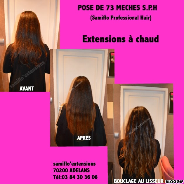 Ton travail est vraiment magnifique on voit bien que tu aimes ton métier. Dimage j'habite la corse c'est trop loin! mais toi qui est expert j'avais une question, je voudrais me faire poser des extensions y a une professionnelle chez moi qui le fait sachant que j'ai les cheveux fins et que tous les 3 mois je fais des mèches blondes (en racines) et j'hesite entre la pose à chaud et à froid, la pro que j'ai contacte m'à dit que pour la pose à froid avec les micro anneaux au bout d'un moment ceux là se voient. Donc elle m'à plus dirigé vers une pause à chaud, mais avec tout les avis que je vois sur le net sur la pose à chaud sa fait flipper lol! elle m'à rassurer en me disant que bien poser la kératine n'abîme pas le cheveux car les points se font à plat. et l'entretien sa se passe comment? car j'ai les cheveux un peu sec à cause des méchecs, je leur fait quand même des soins bien sûr. Et après quand je voudrais refaire les racines des mèches alors que j'aurait des extensions c'est pas trop galère pour ma coiffeuse? Voilà je dois la rencontrer pour un. faire un devis pour le prix mais je voulais avoir aussi ton avis.merci bisous et continue j'adore ce que tu fais et voir le résultat