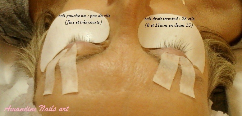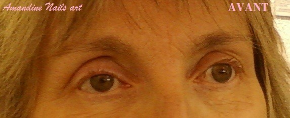 pose du jour sur ma maman ! très très peu de cils et tout petits ! je n'ai pu en poser que 25 cils /oeil en diam 15 : 9 et 11 mm. temps: 1h préparation comprise