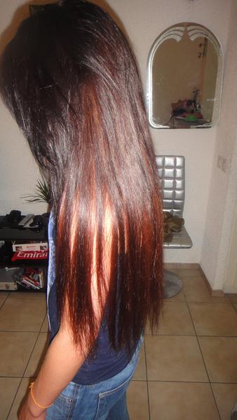 Voici ma pose de hier, 115 mèches + une couleur. La fille était impatiente et voulait absolument poser des mèches hier soir pourtant je n'avais pas du tout les mèches de sa couleur en stock donc elle a voulu mettre les seules mèches que j'avais en stock (des blondes) sur ses cheveux brun et faire un colo après la pose. Donc c'est ce qu on a fait, elle avait les cheveux mi long une bonne masse et elle n'a pas voulu bcp couper et était satisfaite du résultat. Moi j'était K.O. lol on a fini a 23h30