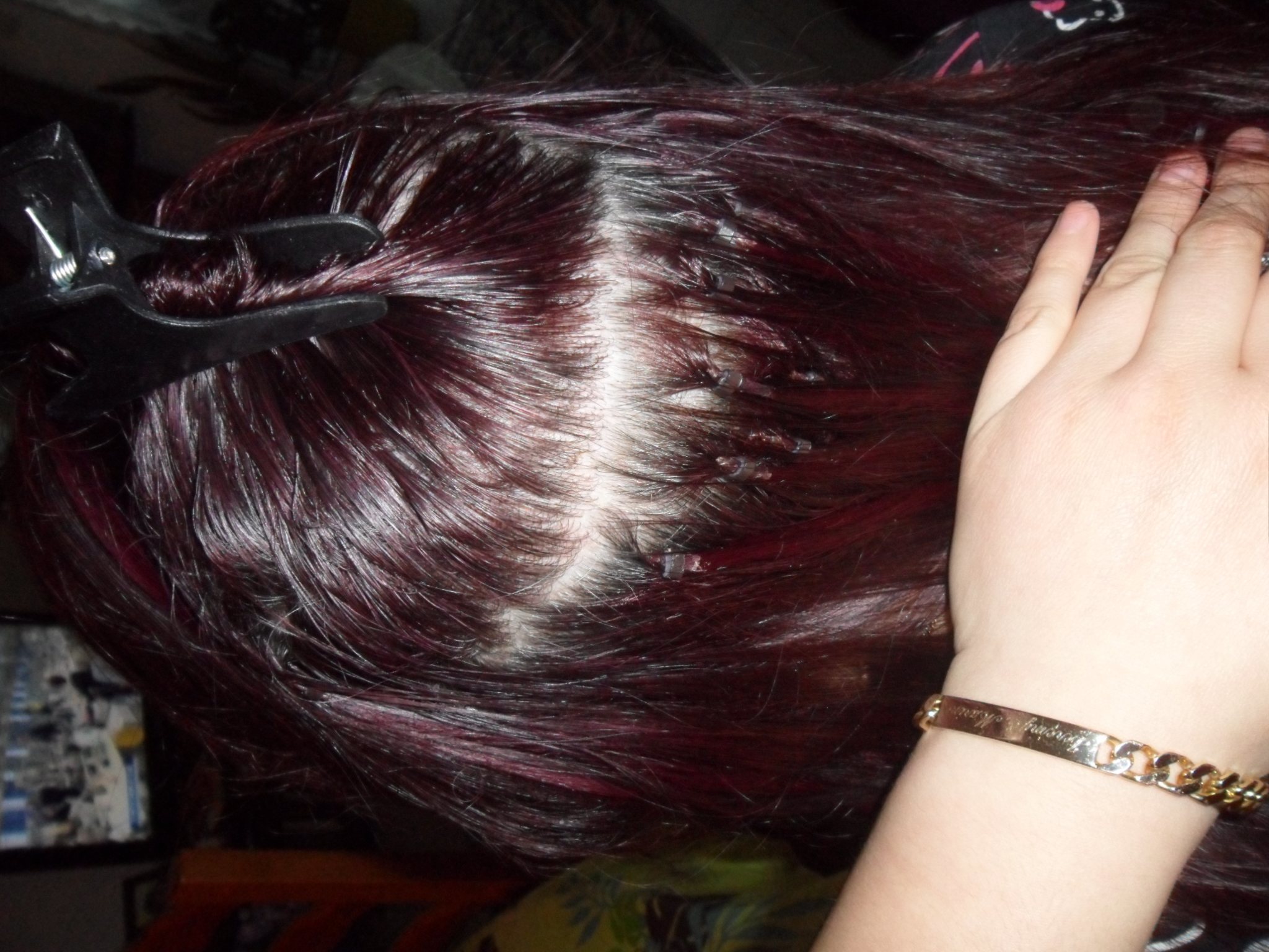 Pose a froid avec anneaux ma première lol!! J'ai posée 38 mèches seulement car c'est cheveux sont trés fin et trop se serait vue car beaucoup d'épi donc je ne monte pas haut.