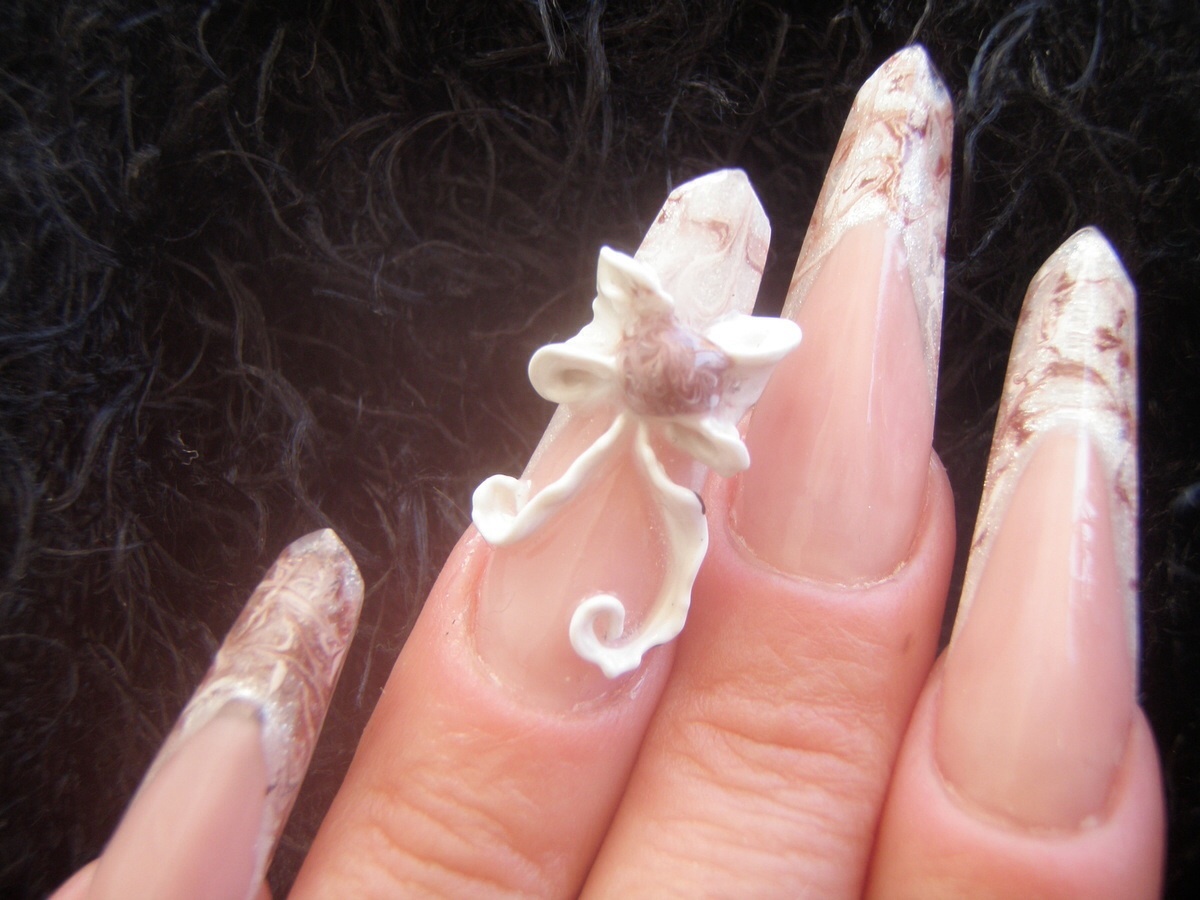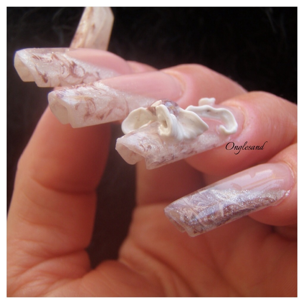 French marbrée, au blanc nacré marron et blanc