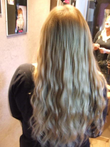 Tu lui as fait quelque chose pour que ses cheveux paraissent moins abimés après la pose? haha :D