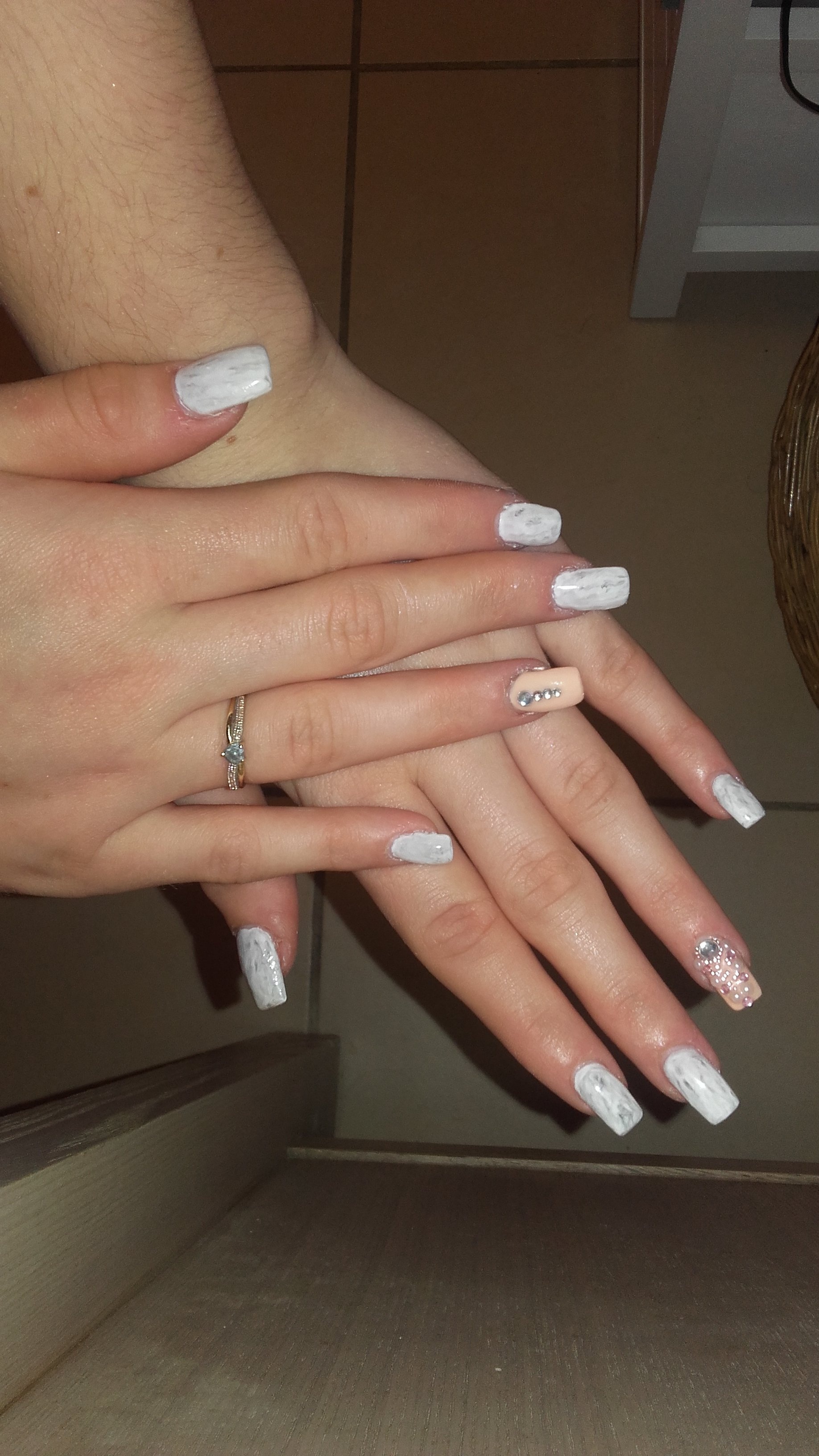 Ma pose en gel sur tips réalisée hier, j'ai fait un effet marbre dessus.