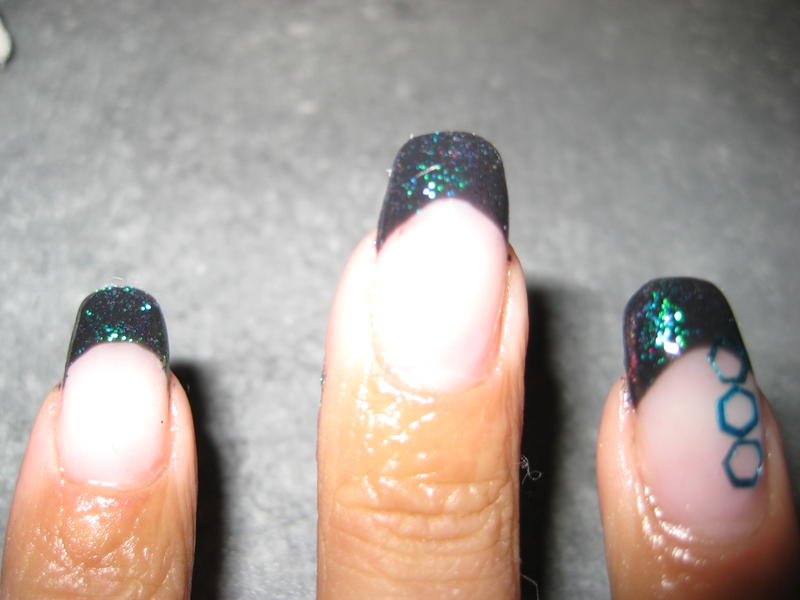 Regardez pas c'est ma mauvaise main lol euhhh j'essayerais de mettre une foto de la pose entire pour voir ce que ca donne mais en vrai c super comme effet