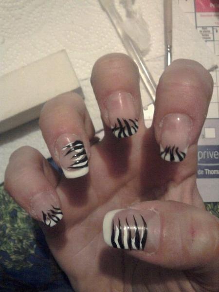 Voilà après ma main gauche en léopard voici ma main droite en "tigré" au début je voulais faire un effet zébré que l'on voit dans le post mais la déco ne m'a pas plus donc j'ai changer.