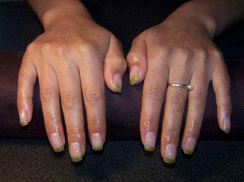 bon alors ce soir j'ai fait pour la première fois une pose paillettes sur ma copine qui a des ongles supers à travailler car une belle plaque d'ongle..