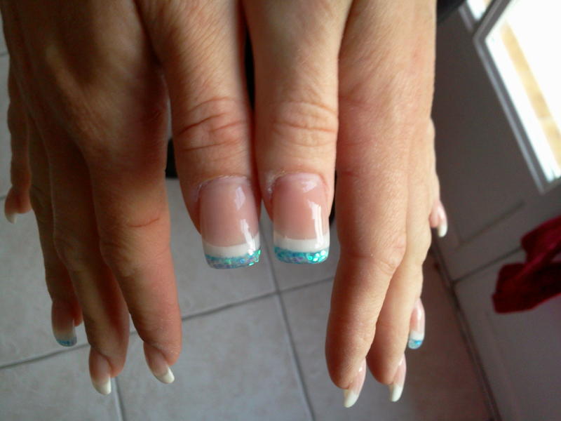 diz'ongles Membre Actif 12 Avril 2011 #5 Re : pose résine french bleu pailletés et blanche trés jolie