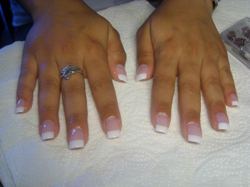 voici une pose de cet aprem! la fille avait une base tres courte! donc j ai collé des tips transparent et j ai fait mon rallongement de plaque sur mon tips!mais elle ne voulait pas de décos!!!!pfffffffff meme pas une toute petite!!! c est dur pour moi!!!gros bisous!!
