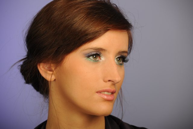 voici une pose, faite aujourd'hui, suivi un makeup dans le dégradé blanc, mauve lilas, violet et un bo vert pour mettre en valeur des yeux .