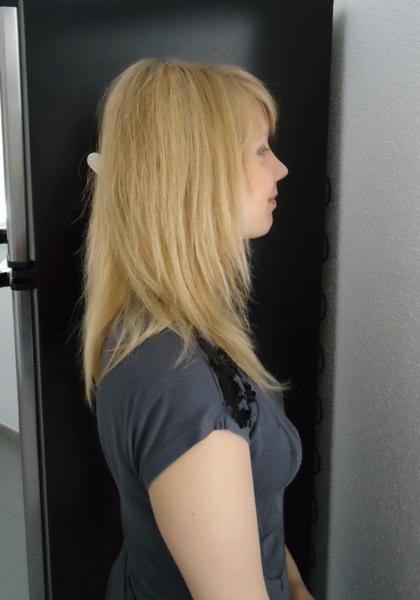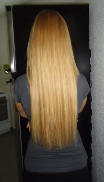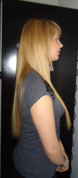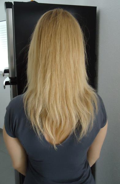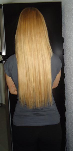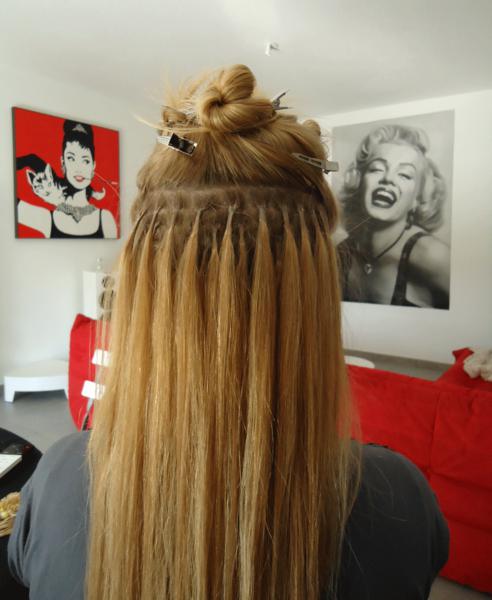 Voici ma pose sur Alexandra, de Strasbourg, 125 mèches à chaud, couleurs de base # 21 et mèches # 24 de chez Kim.