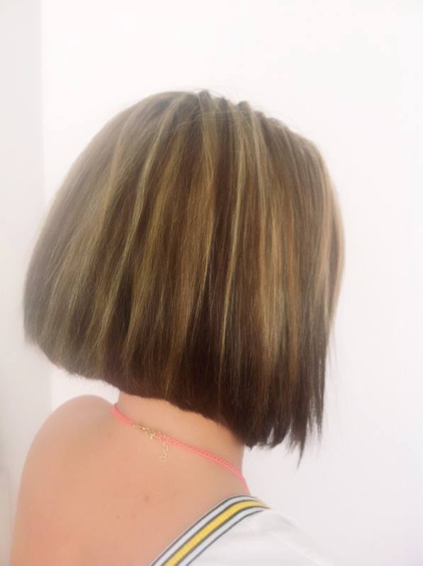 Voici l'exemple d'une de nos pose sur un carré plongeant 180 mèches
