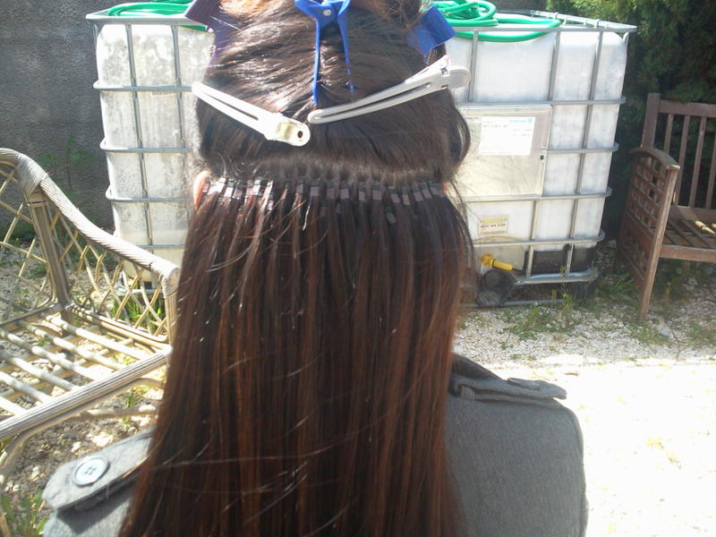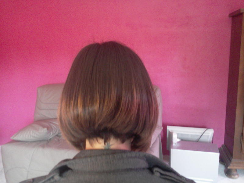 coucou les filles bon voilà une pose de 190 mèches samiflo'hair bon sur les photos le flash accentue vachement son carré donc bon on croirait que c'est mal fait mais je suis fière de ma pose je vous met tout !!!!!!!!!! j'ai essayer les V lol j'avais plus de mèches pour finir mais bon ....